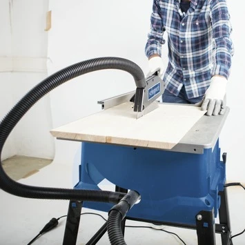 Deze tafelcirkelzaag van Scheppach is licht van gewicht maar met een 2000 Watt motor uiterst krachtig. Zo kun je de zaag eenvoudig verplaatsen en heb je genoeg zaagkracht voor allerlei soorten zaagwerkzaamheden. De tafelcirkelzaag is voorzien van een vloerstandaard, tafelextensies en een handwiel. Zo kun je de zaag naar eigen wens groter maken en omhoog en omlaag verstellen. De Scheppach tafelcirkelzaag HS100S heeft inclusief extensie een afmeting van 642x940mm, een hoogte van 830mm en wordt geleverd inclusief zaagblad met carbide tanden, zaagkap, verstekgeleider en trekgeleider. De maximale zaagdiepte is 85mm.